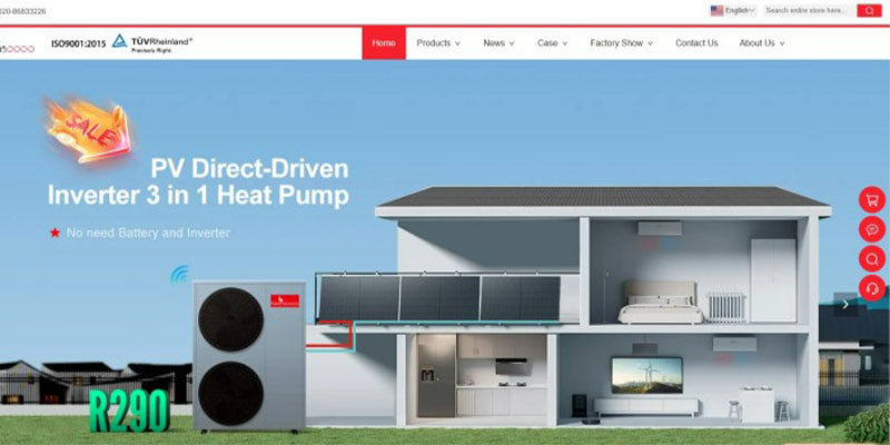 ***新能源科技有限公司是一家生产与销售直流变频热泵、光伏热泵、地源热泵、分体式变频热泵及泳池热泵等系列产品的工厂。针对其产品线多、目标市场覆盖广的特点,我们为其打造了一个专业的外贸营销型独立站。从产品分类结构、技术参数展示、应用领域说明到企业实力、工厂规模、质量体系等模块进行系统规划,让访客能够快速理解产品优势与工厂能力。网站采用多语言架构与本地化内容优化,使其更符合海外采购商的搜索习惯与阅读方式。同时,我们集成 WhatsApp、微信、邮件等即时沟通工具,提升询盘触达效率,帮助客户打造了一个集品牌展示、产品推广与线索转化于一体的高效外贸网站。