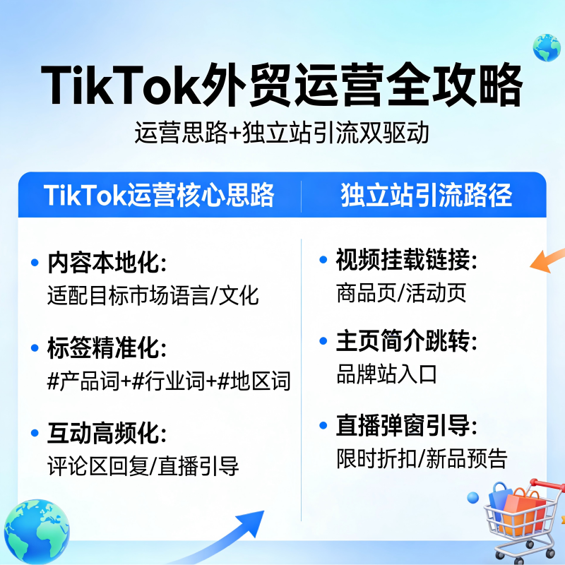 对于企业来说,Tiktok运营不能依赖随意发布,而需要系统化思路。1. 明确目标:是曝光还是转化?2. 内容优先,而非广告优先3. 建立稳定的内容输出节奏 在Tiktok中,用户路径通常如下:1. 用户看到视频2. 对内容产生兴趣3. 点击主页或链接4. 跳转至独立站5. 完成转化