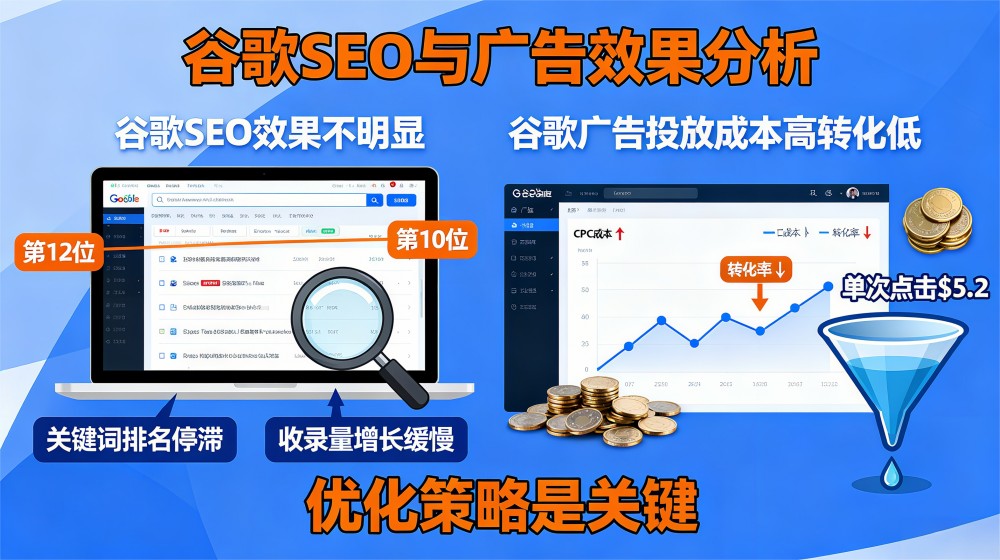 定期分析数据,调整SEO策略。 - 谷歌广告投放成本高,转化低
