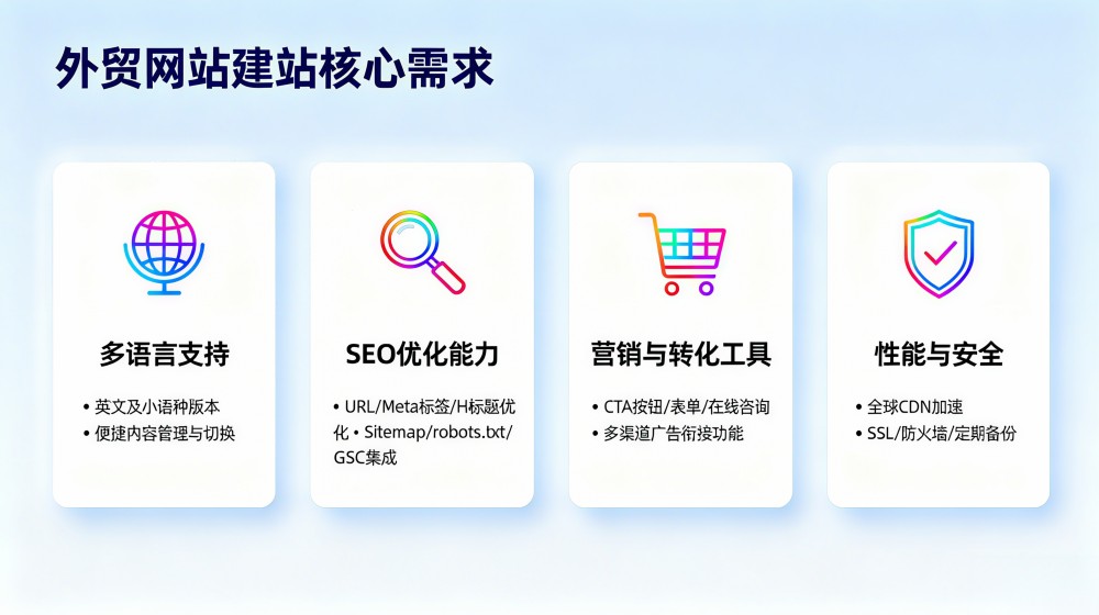 企业应结合自身战略目标和市场需求,选择最合适的建站方案,为外贸推广和谷歌SEO排名奠定坚实基础。