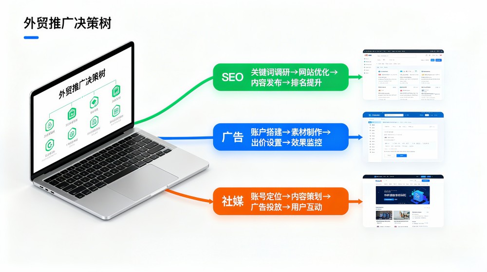 我们致力于为外贸企业提供全链路海外推广解决方案,包括: