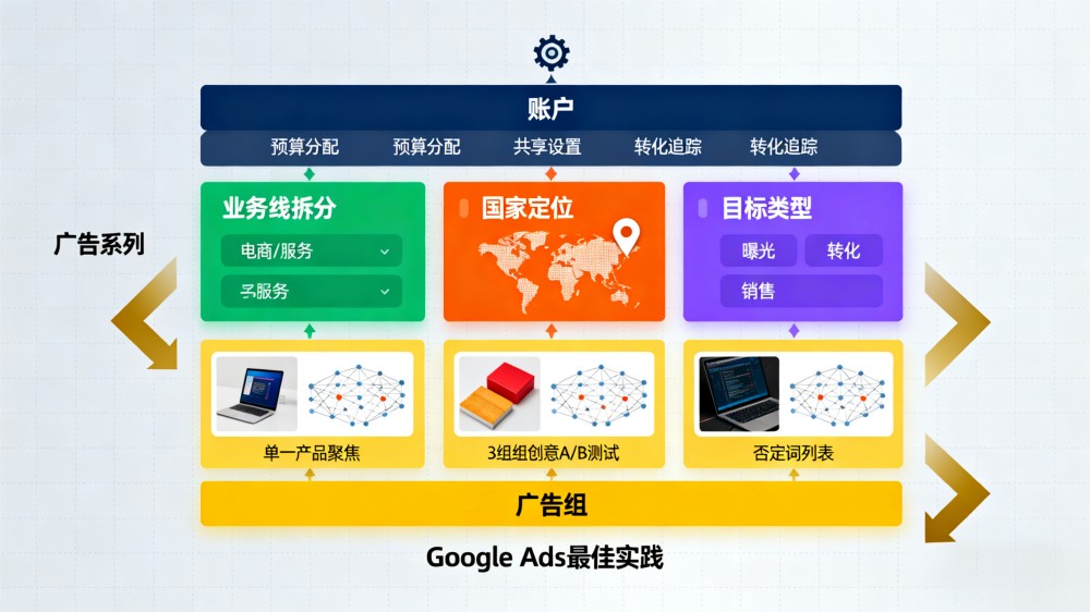 1.广告系列按照业务线/国家/目标拆分;