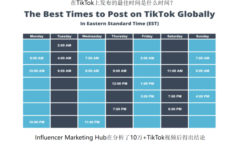 6.发布时间:以下是西方(如做欧美地区账号)的可以参考这个发布时间,具体要可以根据账号运营过程中的视频播放情况适时灵活调整,总之要错开当地工作、晚上睡觉时间;