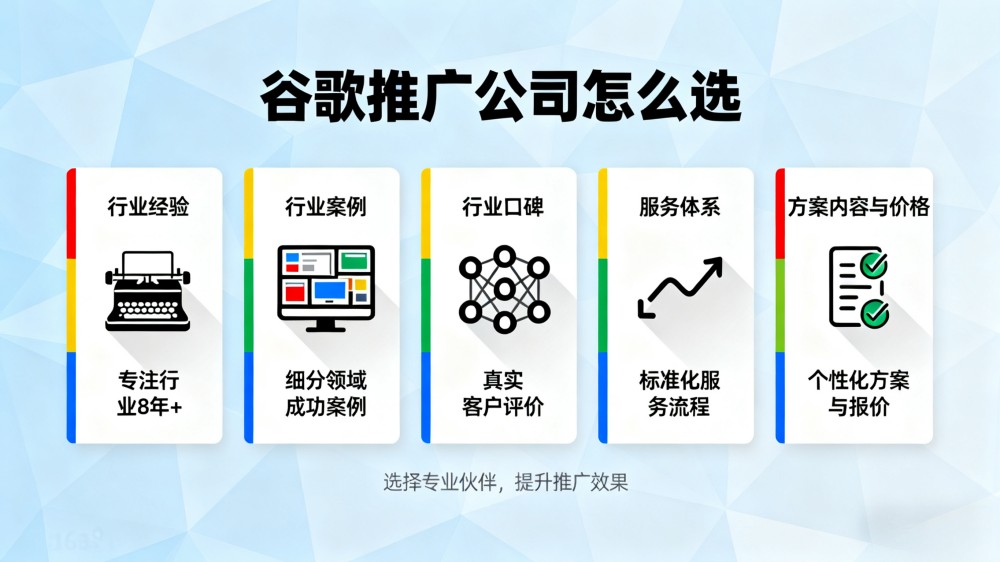 综上所述,要想选择一家信得过的Google推广公司,可以从这个谷歌推广公司的行业经验、客户案例、行业口碑、服务体系、方案介绍等方面综合对比了解。